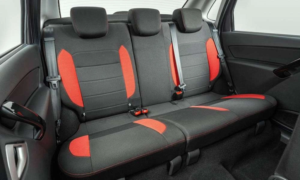 • Обивка сидений ткань. Цвет черный с красными элементами